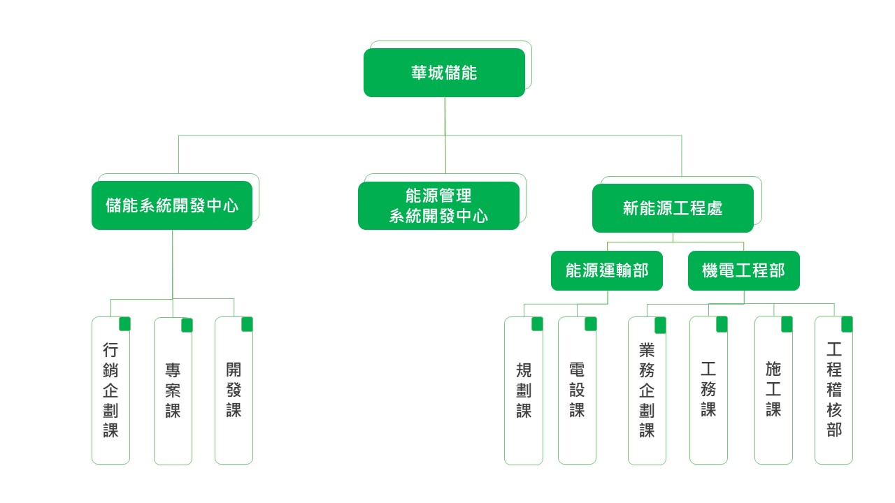 儲能技術發展日益進步,使建設成本降低與發電效能增加,越來越多企業更樂意投入儲能,華城電機佈局儲能系統在地化解決方案,助力企業達成能源轉型目標,與客戶緊密建立長期策略夥伴的關係,積極支持綠色產業及擁有豐富風電陸域統包及太陽能統包工程等實績。於2020年成立儲能中心,專責建置大型儲能案場與電力交易平台規劃,希望在儲能與再生能源領域,能有更多合作,共同創造更友善的大環境。