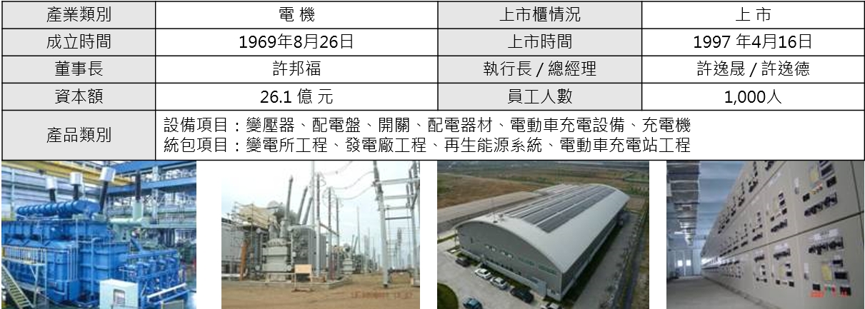 華城電機(股票代號:1519)是國內知名的重電機廠,累積超過五十年專業客製化技術,自1969年成立以來,秉持「品質、參與、福祉、永續」的一貫經營理念。除了在台北及高雄設有營業據點、美國成立子公司外,更有四座工廠坐落於桃園市中壢及觀音工業區、中國武漢。除設備生產製造外,華城電機亦負責機電統包工程,建置完成多所發電廠、變電站與大樓機電工程等,是國內產品線最完整、變壓器產品容量最大、電壓最高、最具規模的專業重電廠。
