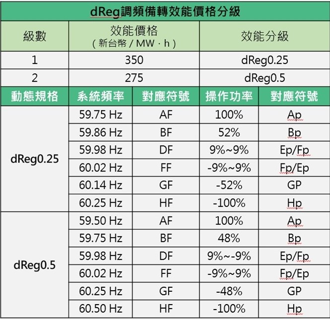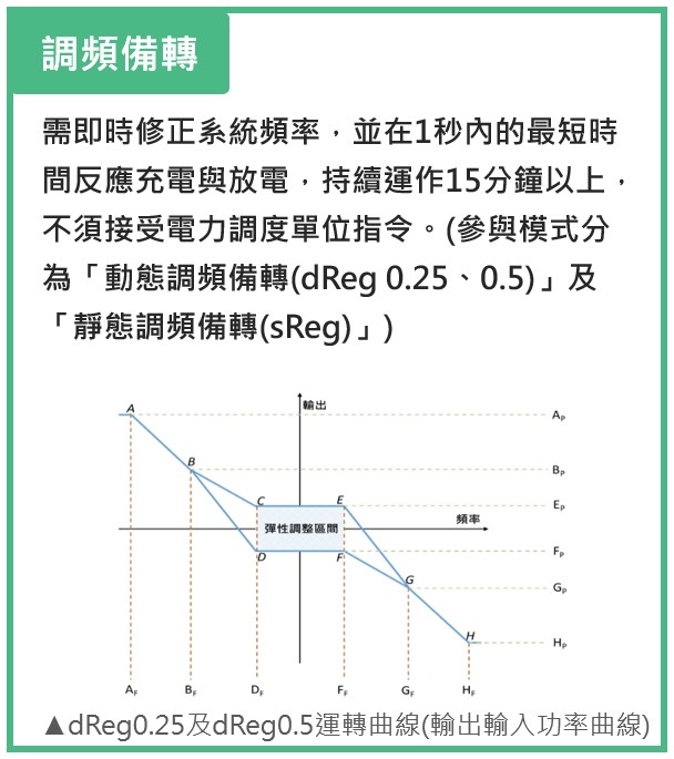 - 1秒內快速反應充放電,分為dReg0.25、dReg0.5兩種規格