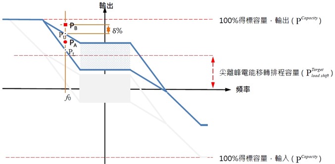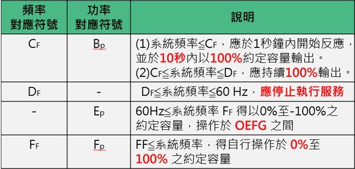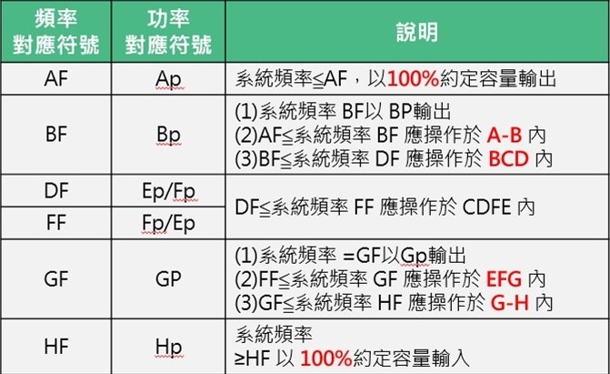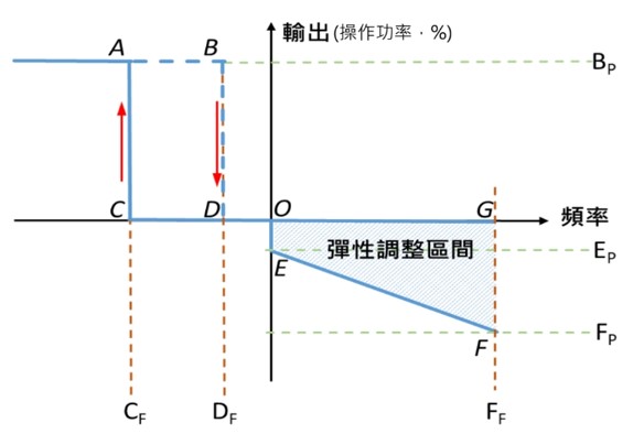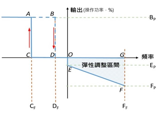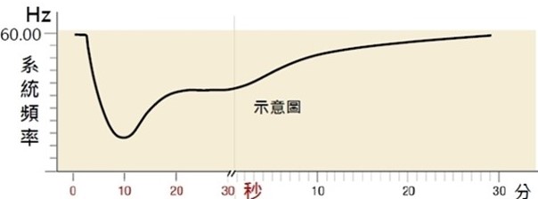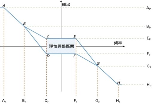 - 當系統頻率降至指定頻率時,100% 輸出約定容量 。