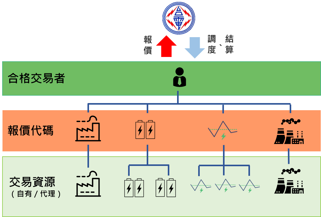 申請註冊登記為合格交易者後(程序分為4個部分),始得參與平台交易,合格交易者除了可以自有資源參與市場外,也可以代理資源參與市場(採代理資源方式者,應為依公司法設立之法人)。